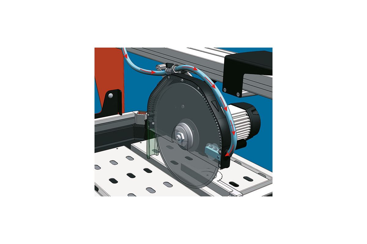 - Система подачи воды — способствует оседанию пыли во время резки;