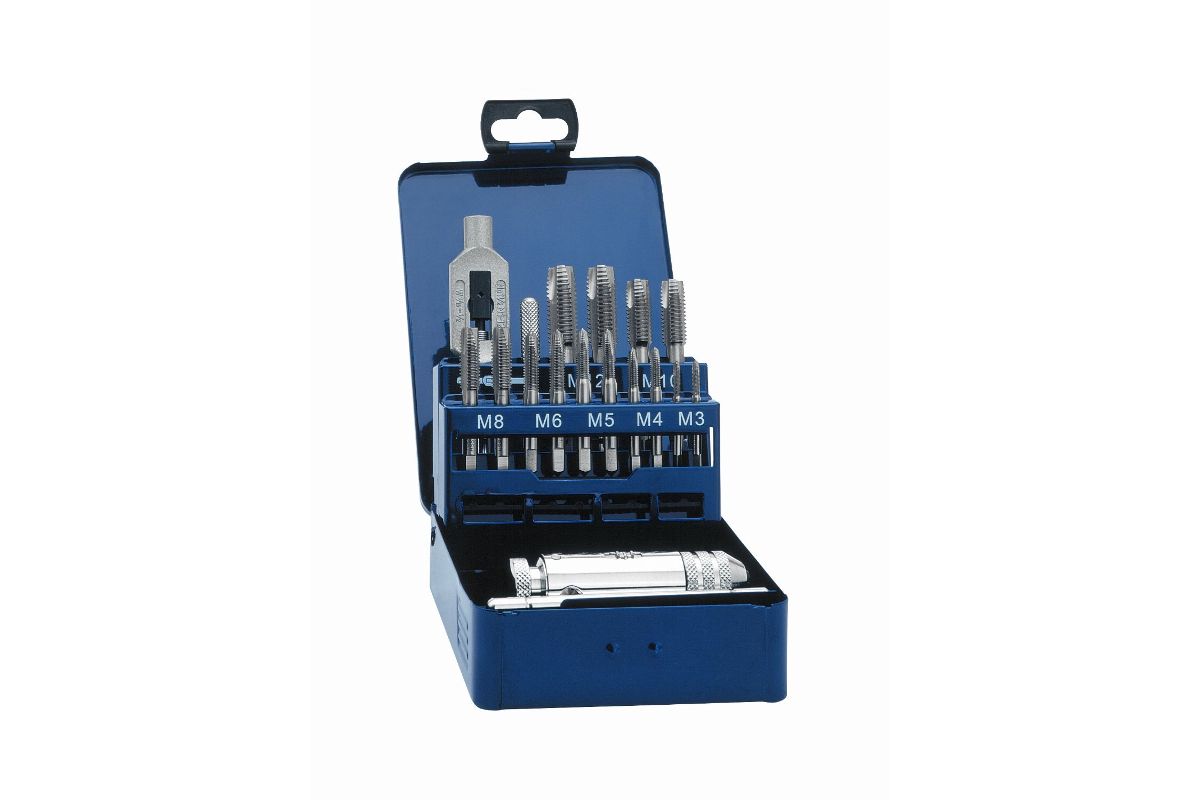 - Однопроходные метчики по 2 шт: M3 - M4 - M5 - M6 - M8 - M10 - M12;