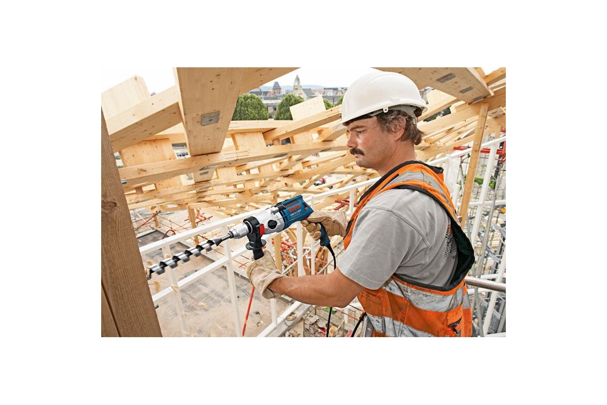 Двухскоростная профессиональная ударная дрель Bosch GSB 21-2 RCT предназначена для выполнения сложнейших работ, как в помещениях, так и на открытом воздухе. Благодаря мощному, высокопроизводительному двигателю на 1300 ватт с большим крутящим моментом, этот компактный инструмент превосходно подходит для проделывания отверстий большого диаметра, независимо от того, с каким материалом ведется работа: с кирпичной кладкой, бетоном, металлом, деревом или плиткой. Эта дрель одинаково легко сверлит отверстия коронкой, заворачивает шурупы и смешивает растворы. Ударная дрель Bosch GSB 21-2 RCT имеет увеличенный срок службы за счет усовершенствованной конструкции и прочного металлического корпуса, что делает ее выгодным вложением для профессионального пользователя. Механическая предохранительная муфта обеспечивает пользователю высокую степень защиты при выполнении задач любой сложности во время работы на строительной площадке.