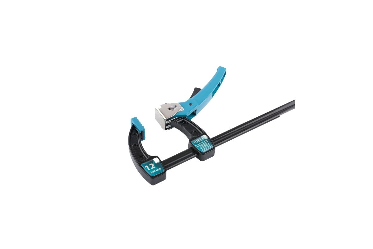 Струбцина реечная торговой марки GROSS предназначена для надежного зажима и удержания заготовок различных конструкций толщиной до 300 мм. Шина струбцины изготовлена из холоднотянутой стали. Стопорный механизм VIBRAFIX позволяет создать усилие в 1200 Н и удерживать его. Прижимная губка струбцины, оснащенная резиновой накладкой, защищает от повреждений обрабатываемую поверхность заготовки.