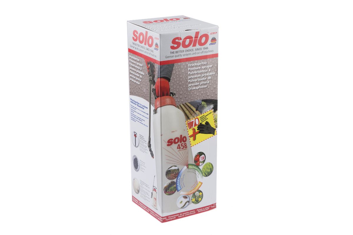 SOLO 458 – профессиональный опрыскиватель для обработки садов, оранжерей, виноградников и лесных хозяйств. Распрыскивает воду, удобрения, пестициды, краску и другие жидкости. Объём бака – 9 литров. Вес опрыскивателя – 3 кг.