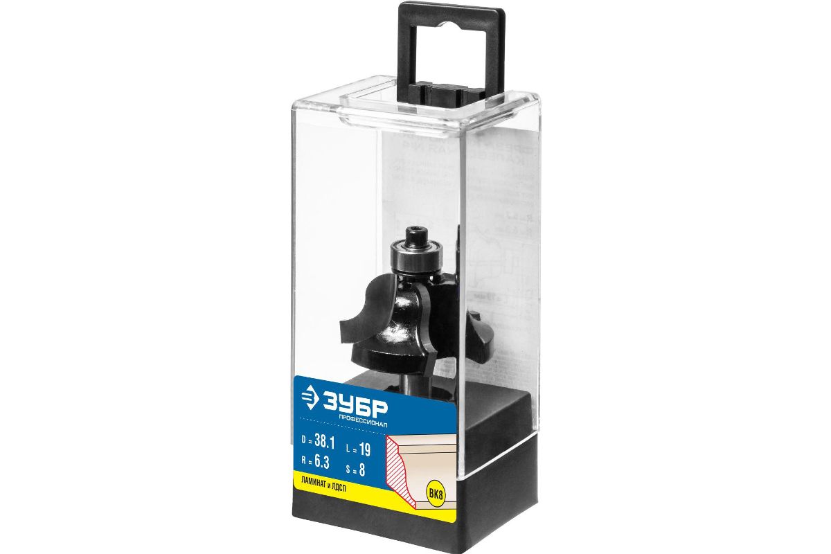 Фреза ЗУБР ''ПРОФЕССИОНАЛ'' кромочная калевочная №4, диаметр-38.1 мм, рабочая длина-19 мм, радиус-6,3 мм, хвостовик-8 мм, диаметр подшипника-12,7 мм